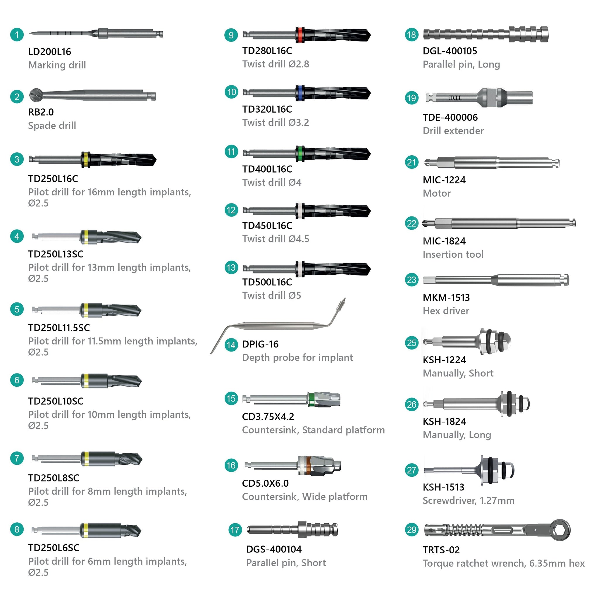 • A complete set of surgical tools, including all necessary drills and components.